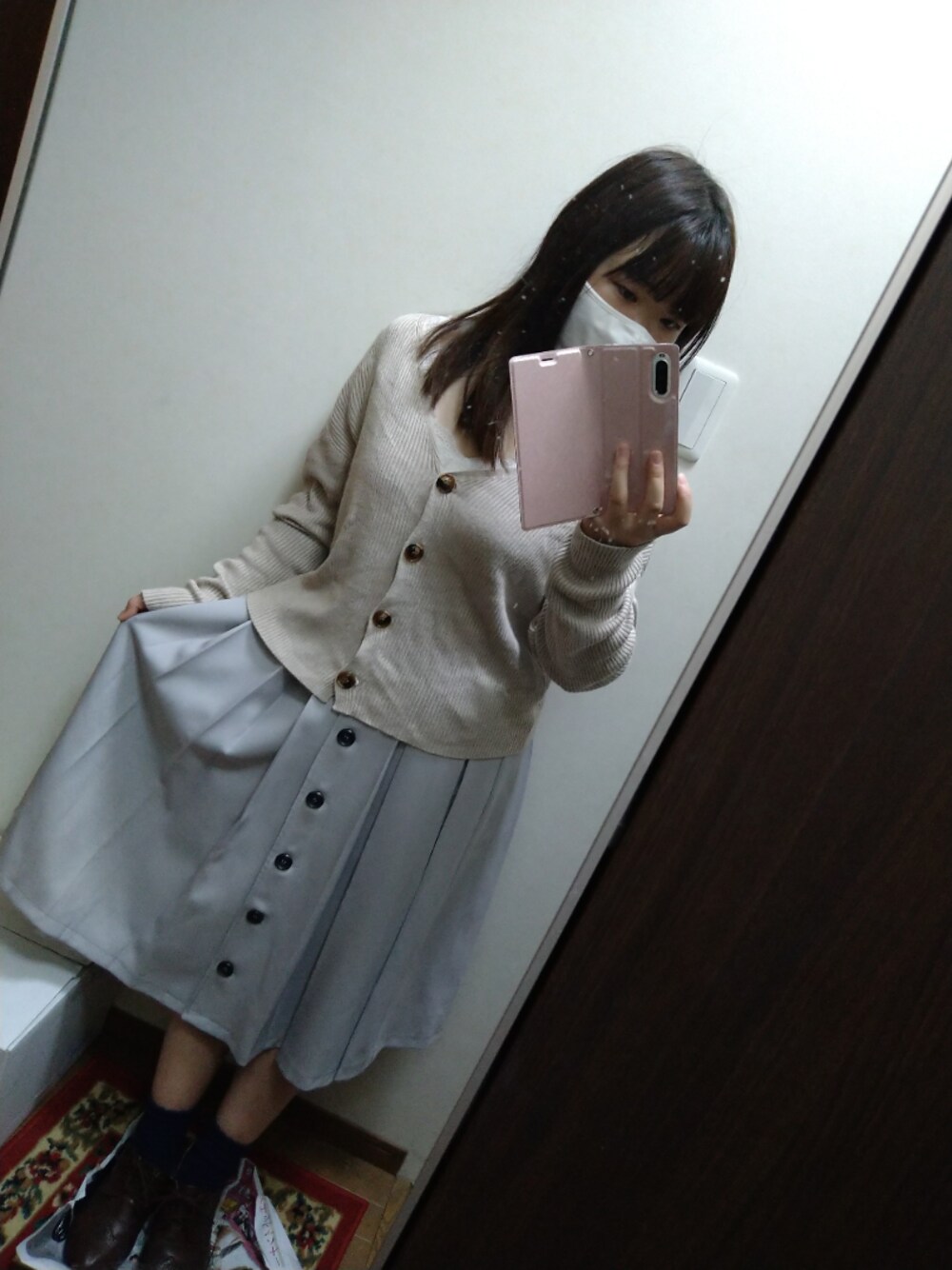 こんばんは!! 今日の通勤コーデです。 レースのインナー→MAJESTIC LEGON カーディガン→one after another NICE CLAUP スカート→Ank Rouge 靴下→DAISO 靴→OLIVE des OLIVE