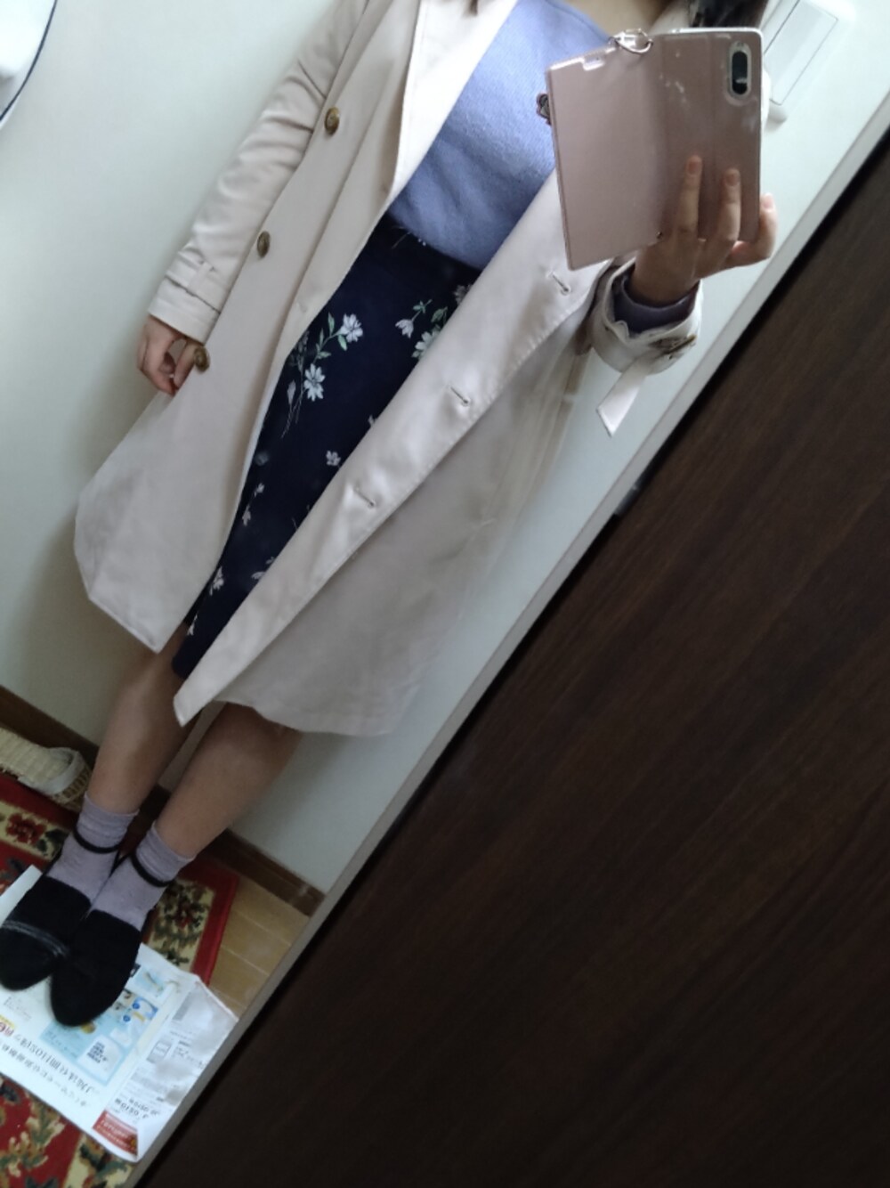 おはようございます。 昨日の通勤コーデです。 トレンチコート→MAJESTIC LEGON ニット→31 Sons de mode スカート→MAJESTIC LEGON 靴下→DAISO 靴→MAJESTIC LEGON
