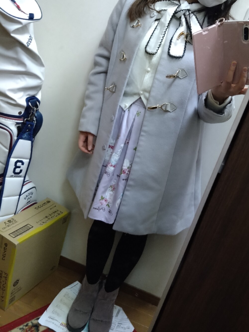 こんばんは! 今日の通勤コーデです。 コート→evelyn カーディガン→titty&Co. ブラウス→AnMILLE スカート→Ank Rouge ブーツ→MAJESTIC LEGON