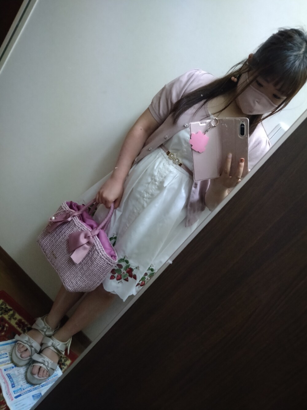昨日のコーデです。 昨日は友達と会いました❤ 2年ぶりにストロベリー刺繍ワンピースを着たのですがやっぱ可愛いですね❤ カーディガン→MISCH MASCH ワンピース→Ank Rouge ベルト→titty&Co. サンダル→OLIVE des OLIVE カバン→MISCH MASCH