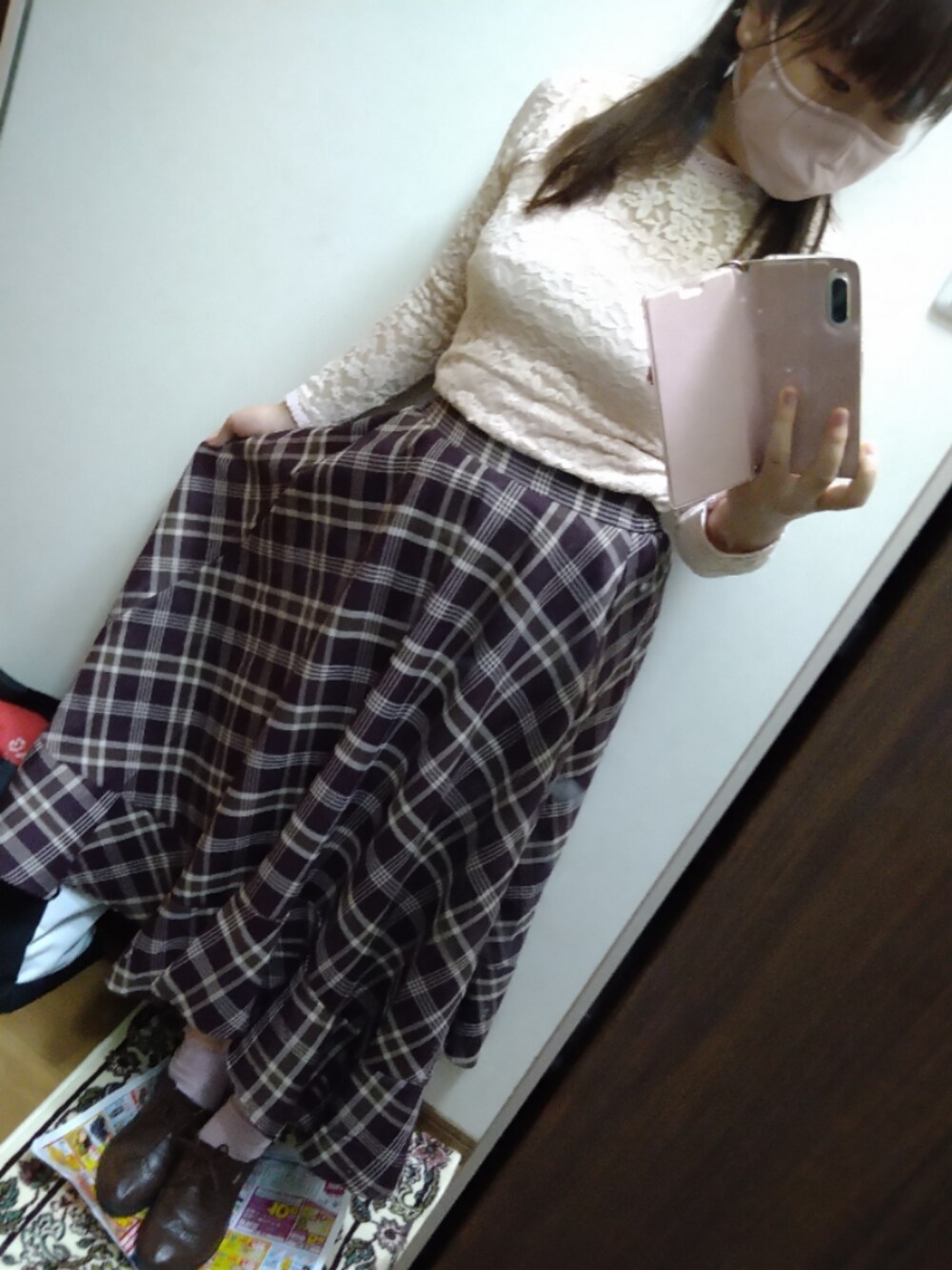 こんばんは 今日のオフィスコーデです。 レースのトップス→dazzlin スカート→OLIVE des OLIVEアウトレット 靴下→THREEPPY 靴→OLIVE des OLIVEアウトレット