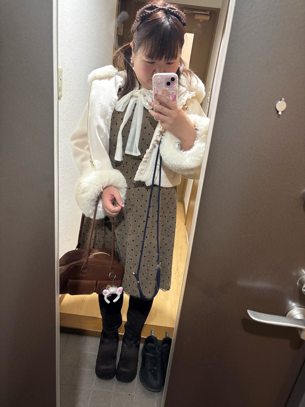 いつか忘れたけど、休みの日のコーデです。 確か11月中旬くらいだったと思う🤔🤔 カチューシャ ▶︎Ank Rouge コート ▶︎ROJITA ワンピース ▶︎LODISPOTTO ブラウス ▶︎ROJITA ブーツ ▶︎MAJESTIC LEGON カバン ▶︎MAJESTIC LEGON