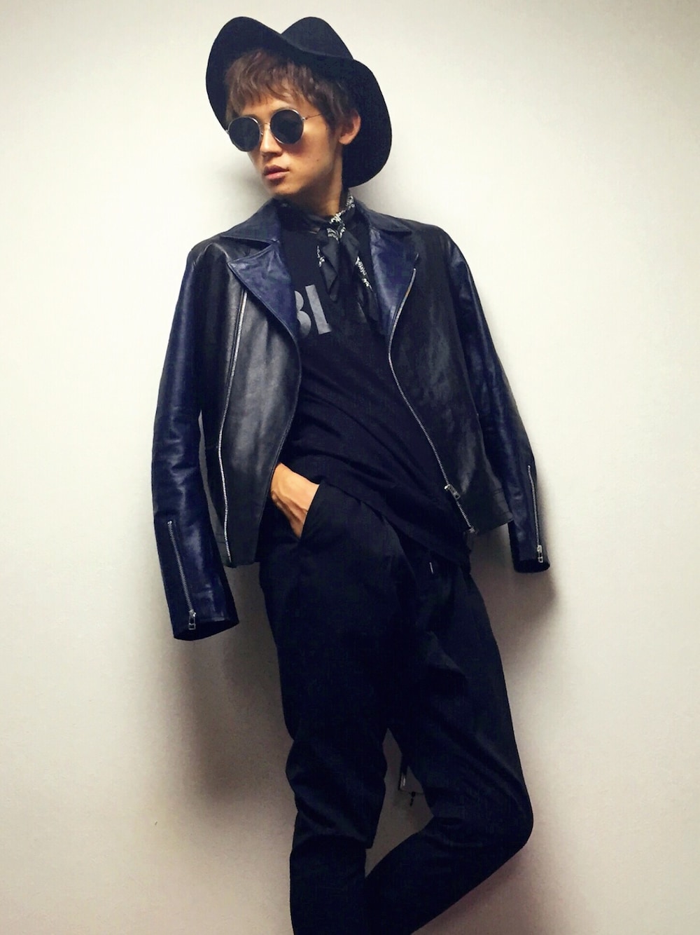 Tatsuya Nagasakaのライダースジャケット「BICOLOR RIDERS JACKET」を使ったコーディネート