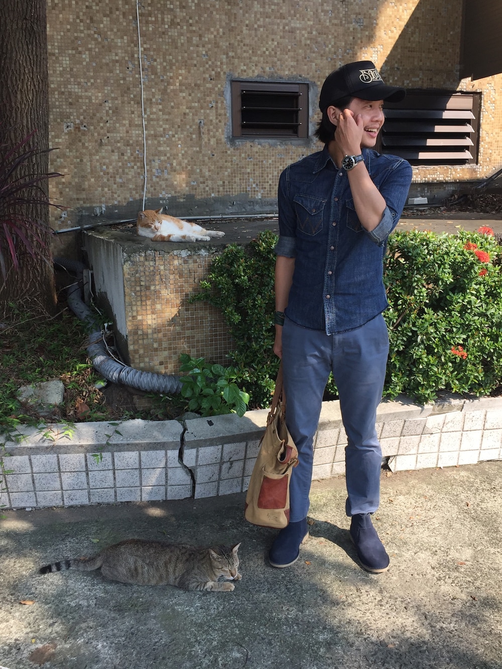 可愛的貓咪也入鏡,走近牠們,完全不怕生地靠近我🐈
