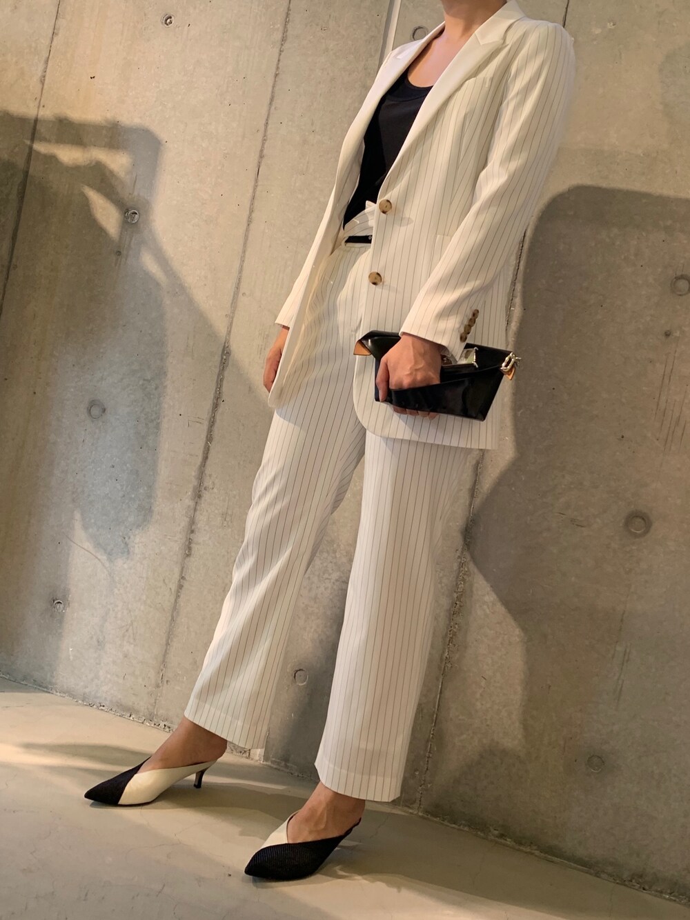 ioroiのその他パンツ「【otona MUSE掲載商品】ピンストライプ ベルテッド パンツ」を使ったコーディネート