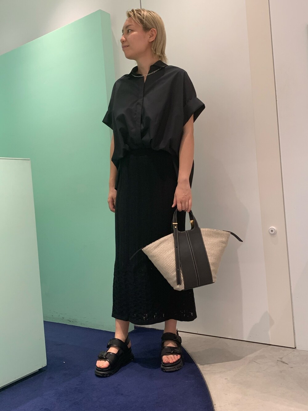 夏のモードなブラックコーデには、 カゴバックを合わせてコーディネートに抜け感をだしてもおすすめです!