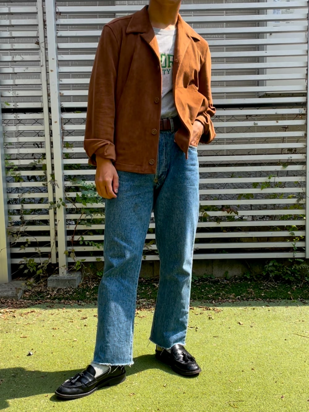 ご覧いただきありがとうございます。 ジャケットはADOLFODOMINGUEZのもので、スエードライクですがポリエステル90%なので取り扱いが楽で気に入っています。 インナーにchampionのカレッジT着て決めすぎないようにしました よろしければフォローお願い致します