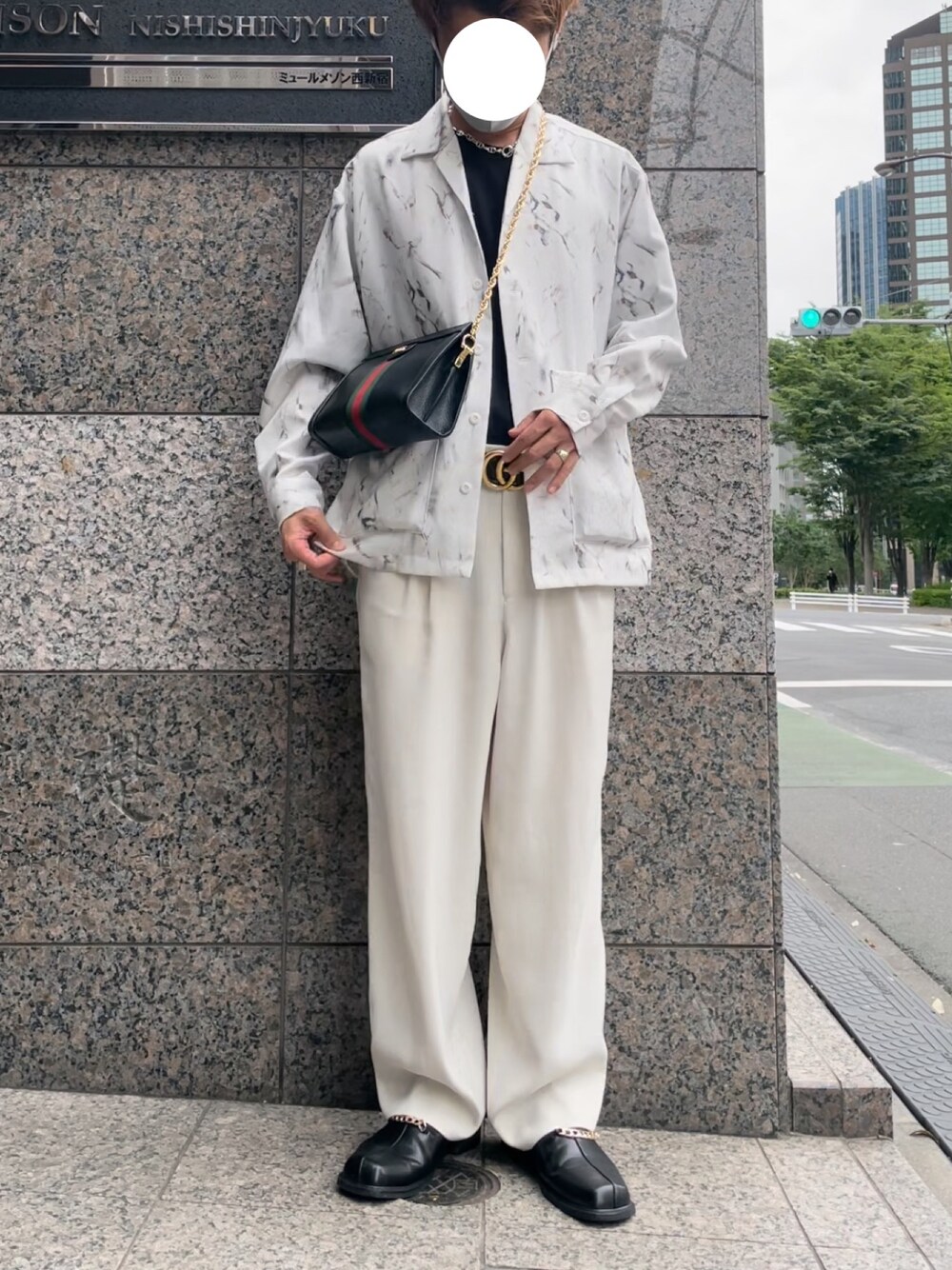 上限ホワイトでセットアップ風に仕上げました 色使いで季節感、清潔感を出しつつバッグやシューズの黒で引き締め あとはハイブラの小物使いで単調にならないようにしてます