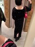 ホリデーシーズンにぴったりのベロアワンピース♡ ほんのりパフスリーブのシルエットと刺繍もアクセントになって可愛いワンピースです! タイトすぎずにストレートなシルエットで甘くなりすぎないのも◎
