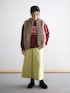 何度も登場しているアルパカシャギーベスト◎ ロゴスウェットにもオンしやすいサイジングです。 柔らかな色味のイエロースカートがカジュアルさを抑えてくれます。 コートを上から合わせても明るいスタイリングを楽しめます。