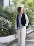 セットアップをそのまま着るだけではなく、ベロアベストを合わせて抜けをプラス。 グレーのワントーンでまとめ、レイヤードを楽しむスタイリング。 こちらも年末年始のおでかけニーズにおすすめです。