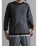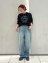 チャコールのプリントTに黒のメッシュtopsを重ねて新鮮な表情に。同系色で色を合わせると大人の方も挑戦しやすくおすすめです。 ネオンライクなプリントが効いて、シンプルすぎないスタイリングに。