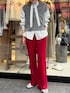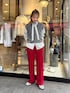 秋冬は赤を取り入れがち。 新作のパンツはラインがとってもきれいでお気に入りです。 今時期にぴったりなブリーチデニムのような風合いのベストは、キレイめスタイルのカジュアルダウンにもおすすめ!