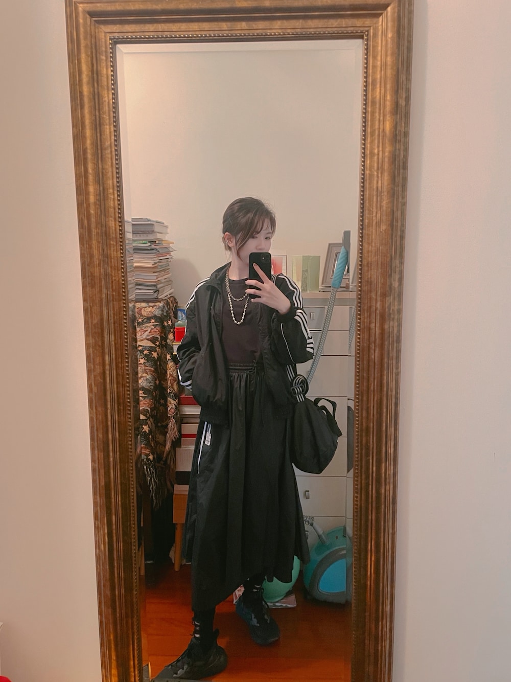 Mio哥哥のスカート「adidas(アディダス)LONG SATIN SKIRT/ロングサテンスカート/FL0039」を使ったコーディネート