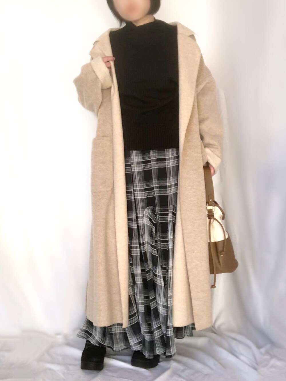 いつもありがとうございます✨ 柔らかコートと古着のチェックスカート、ブーツ合わせで冬仕様コーデ♬︎♡