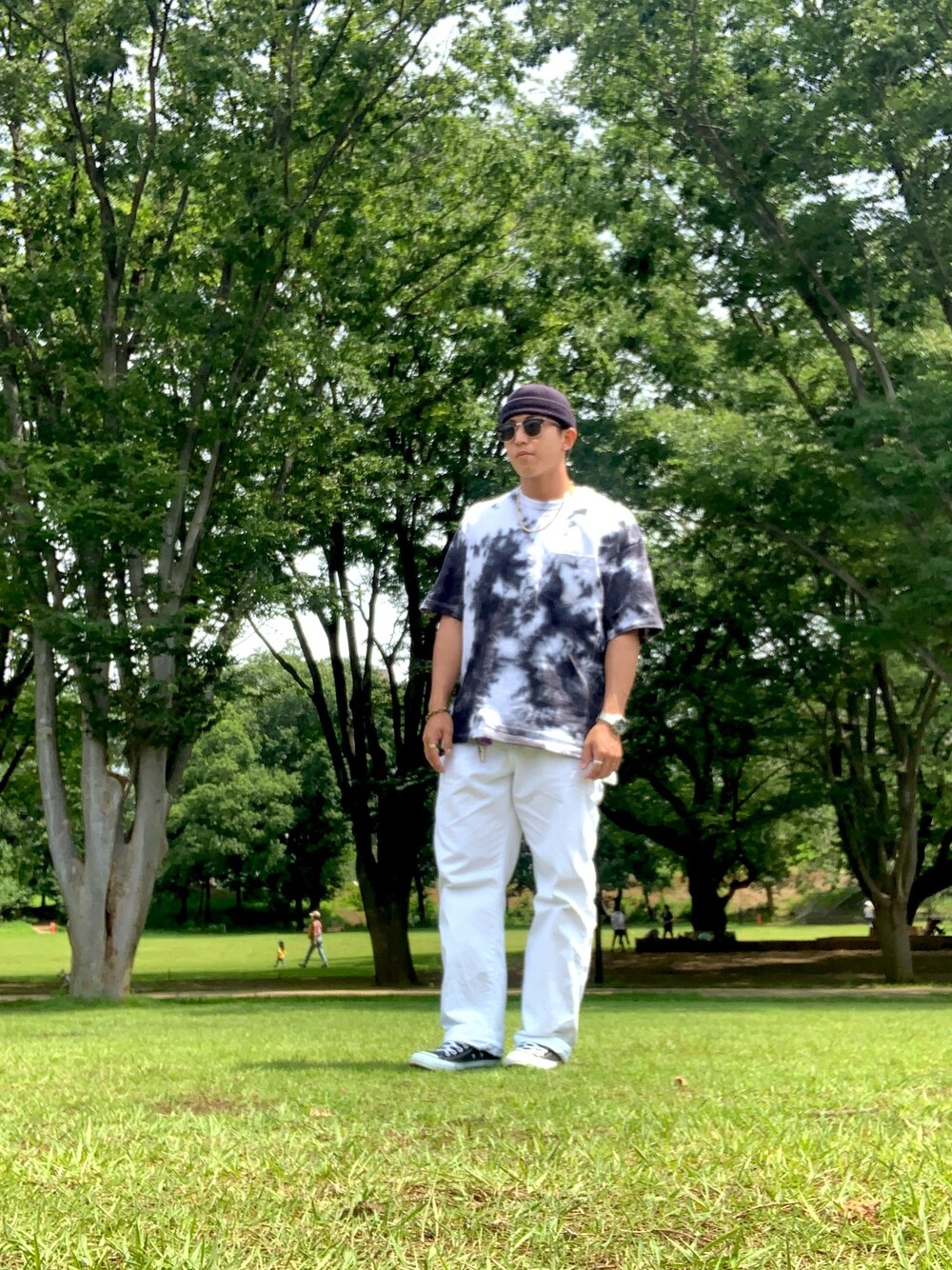 友達にGUの白Tをタイダイに染めてもらいました👍 めちゃくちゃ綺麗に染めてくれて最高にイケてる1枚になりました😎