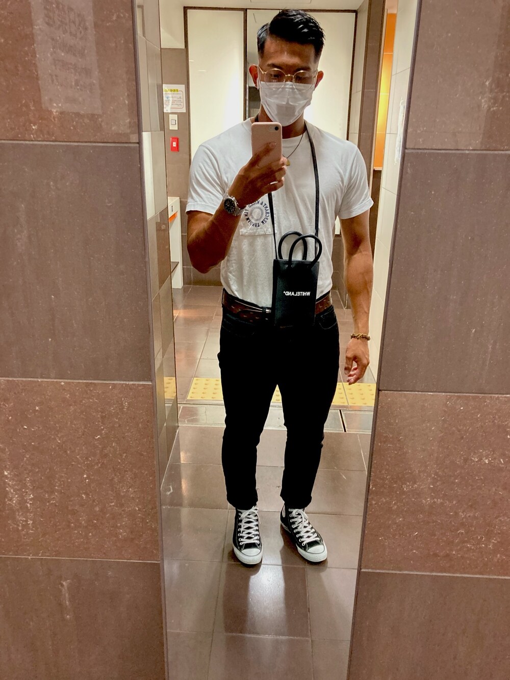 HIR0MU.のトートバッグ「WHITELAND/ホワイトランド/MINI TOTE/ロゴミニトート」を使ったコーディネート