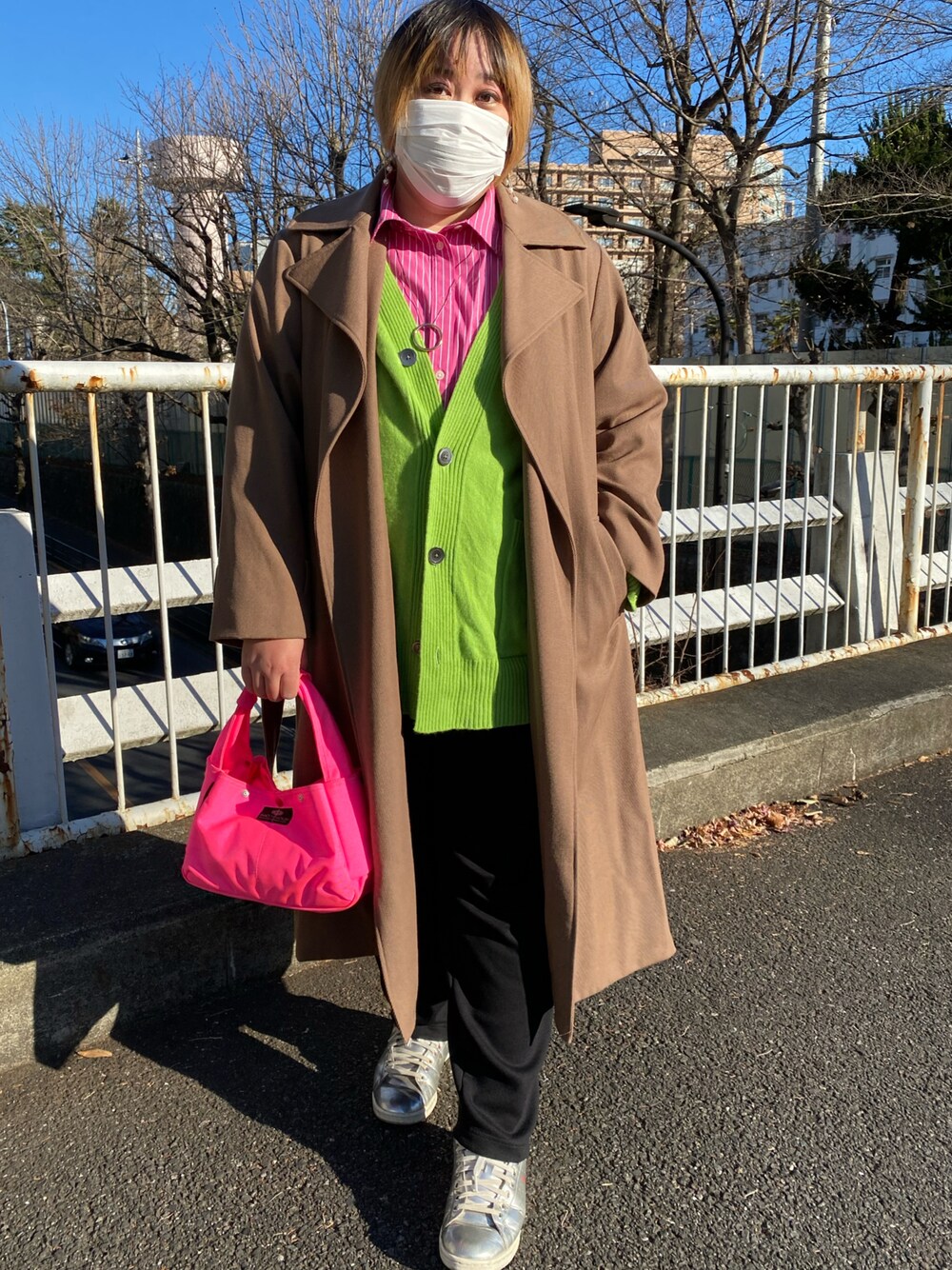 ネオンピンク×ネオングリーンの派手カラー春コーデ✨ ボトムやコートは落ち着いた色味のものを選んでまとめました♪ 故・エリザベス女王がヘンリー王子の結婚式の時に着ていたパープル×ネオングリーンのカラーコーデがめちゃくちゃ好きだったので、そこからインスパイアされてこの色合わせにしてみました💫 エリザベス女王は、全ての人と触れ合えるわけではないので「せめて、遠くから見てもどこにいるか分かるように」して、女王の姿を見ることが出来た、と会いに来てくれた人々に思ってもらえるように華やかなカラーをお召しになっていたそうです。 90年代、ダイアナ妃とエリザベス女王の鮮やかな色のお召し物をTVで観ては「綺麗だな〜」と憧れていました😆🌸