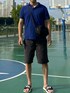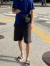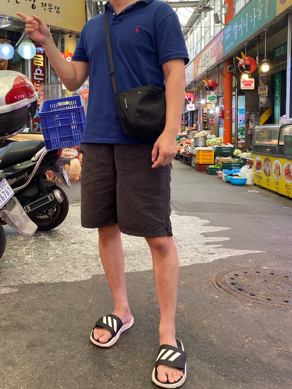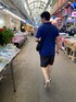 夏日の爽やかポロコーデ✨ 韓国の川辺や市場を散策しました⭐️ 足元はサンダルですが、ブルー×ブラックできれいめ休日スタイルに💫