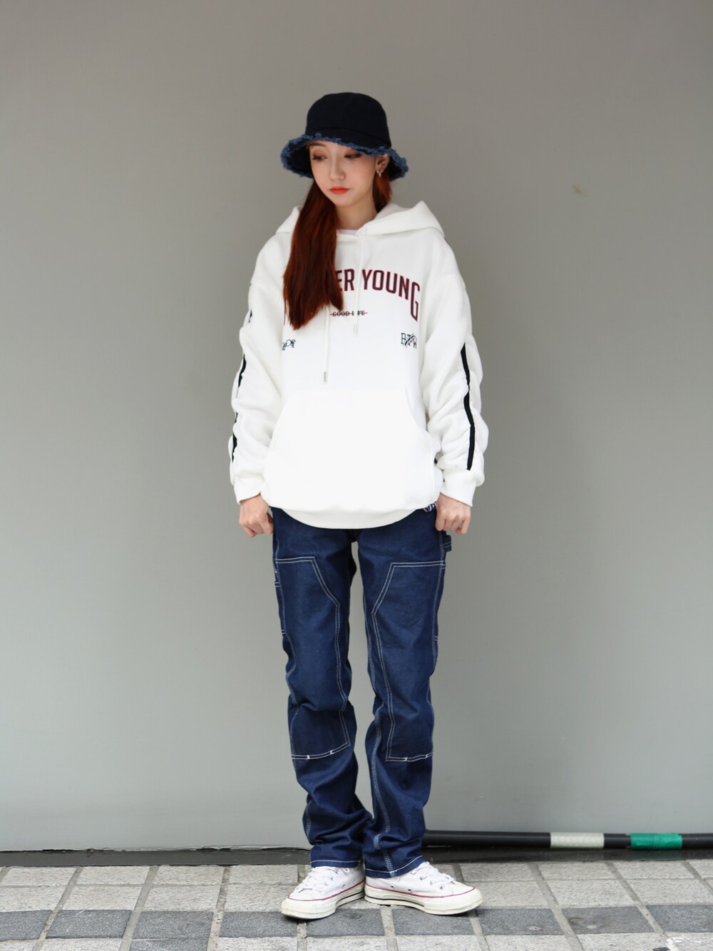 romanticcrownのその他「Shoulder Line Hoodie_White」を使ったコーディネート