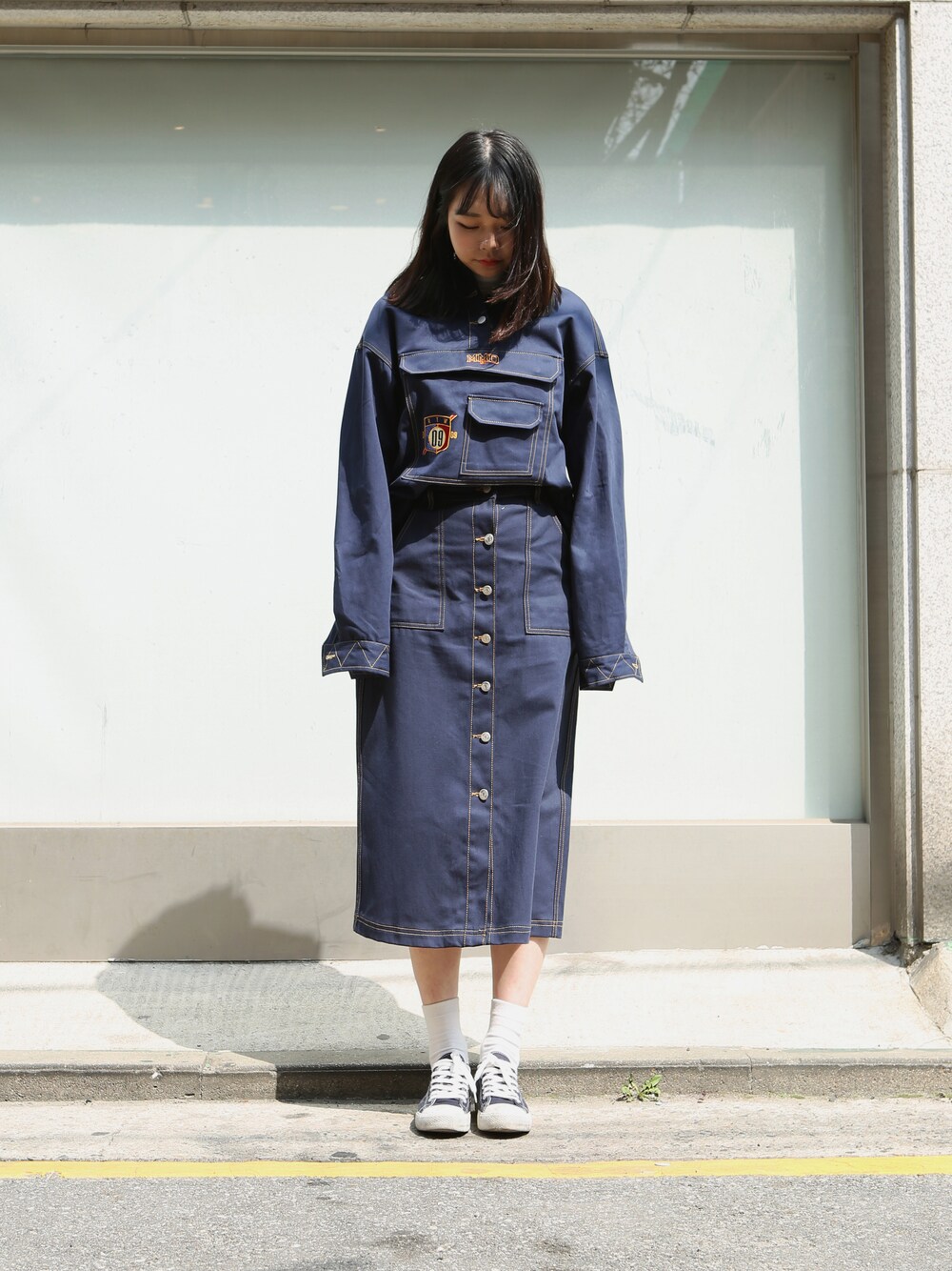 romanticcrownのその他「Cotton Long Skirt_Navy」を使ったコーディネート