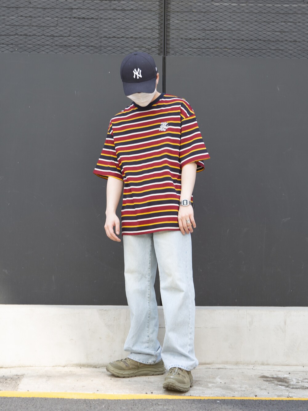 romanticcrownのTシャツ/カットソー「E.D.V Striped T Shirt_Burgundy」を使ったコーディネート