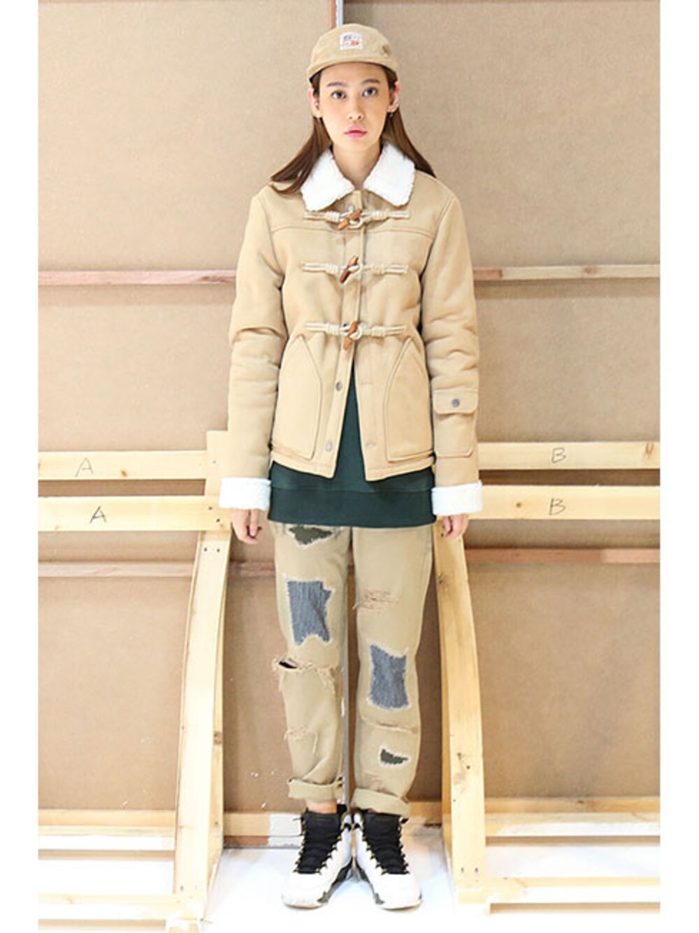 romanticcrownのジャケット/アウター「LUMBERJACK MOUTON JACKET_BEIGE」を使ったコーディネート