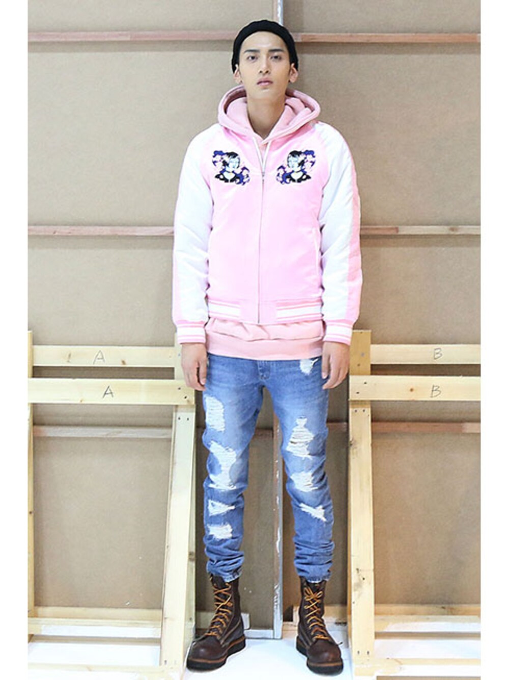 romanticcrownのジャケット/アウター「WALKING Matilda 4oz SOUVENIR JACKET_PINK」を使ったコーディネート