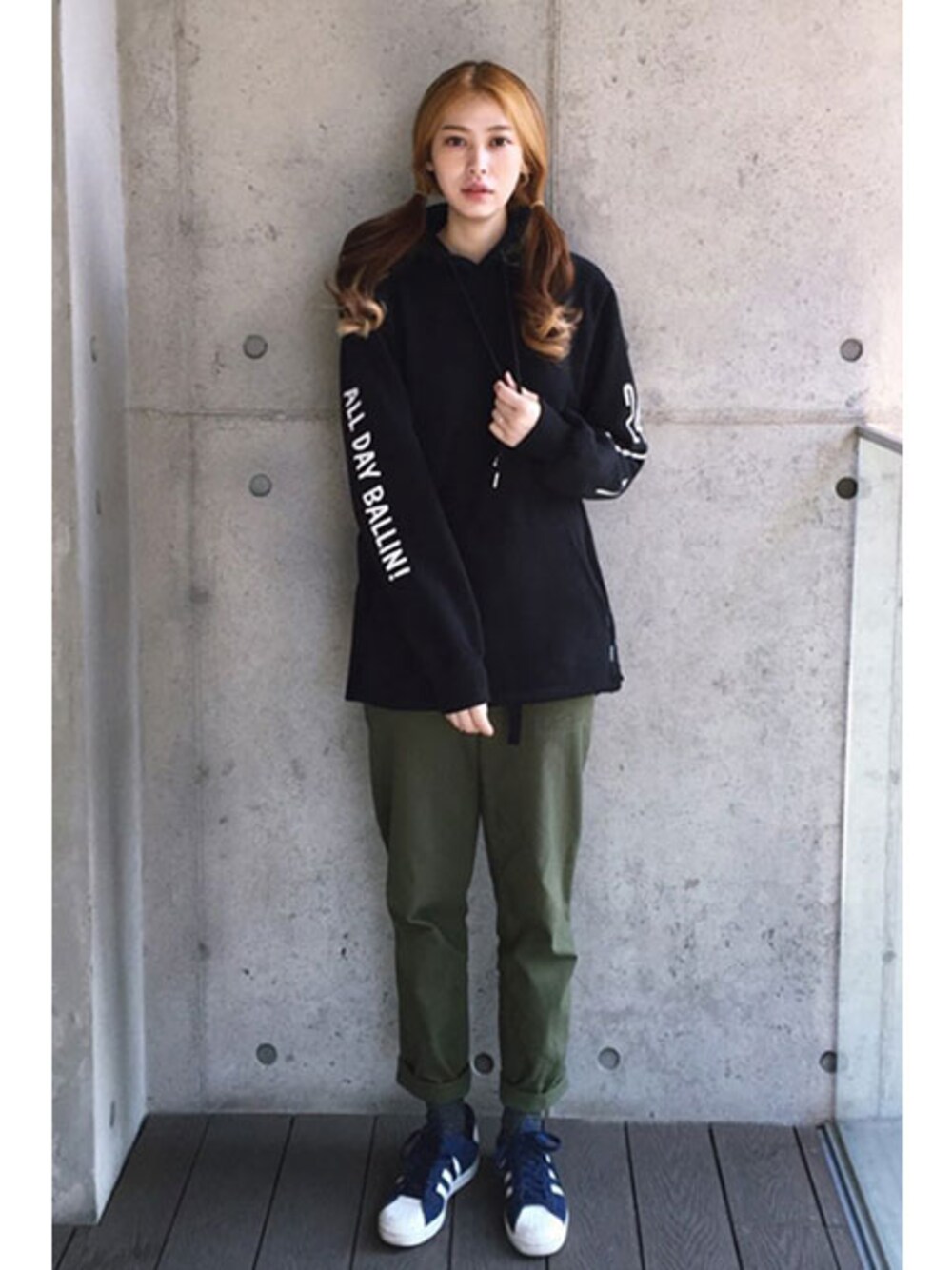 romanticcrownのその他「BALLIN LONG HOODIE_BLACK」を使ったコーディネート