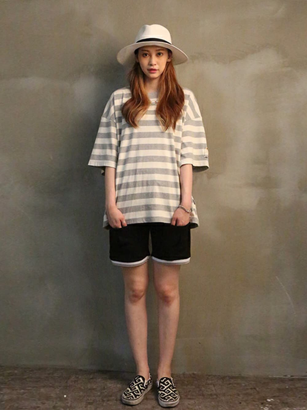 romanticcrownのその他「STRIPE WIDE 1/2 SHIRT_GRAY」を使ったコーディネート