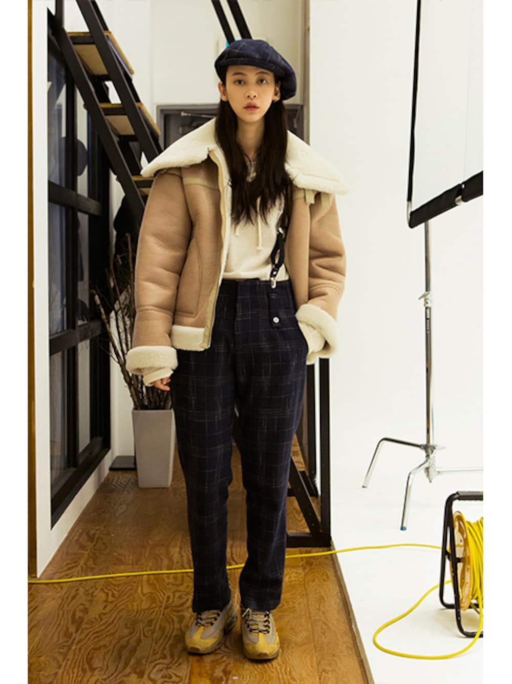 romanticcrownのジャケット/アウター「WIDE FIT MOUTON JACKET_BEIGE」を使ったコーディネート