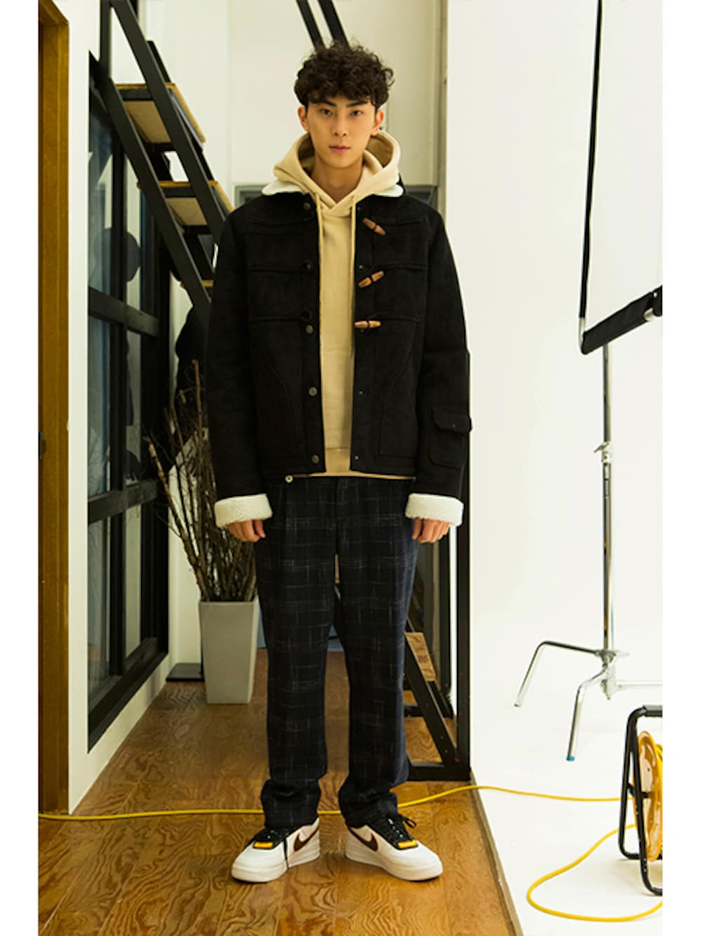 romanticcrownのジャケット/アウター「LUMBERJACK MOUTON JACKET_BLACK」を使ったコーディネート
