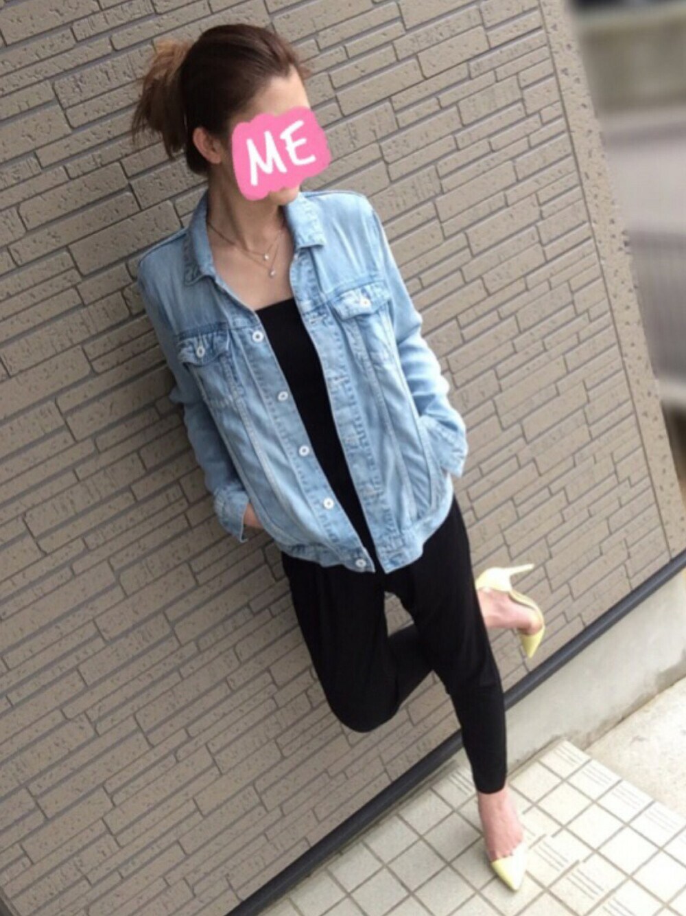 YesterdayCD ♫꒰・‿・๑꒱ 昨日はam雨で肌寒かったぁ ☔ サスカットロンパ に 同色ベア合わせて ベアロンパ風 ✕ デニムJK ⋈*。゚
