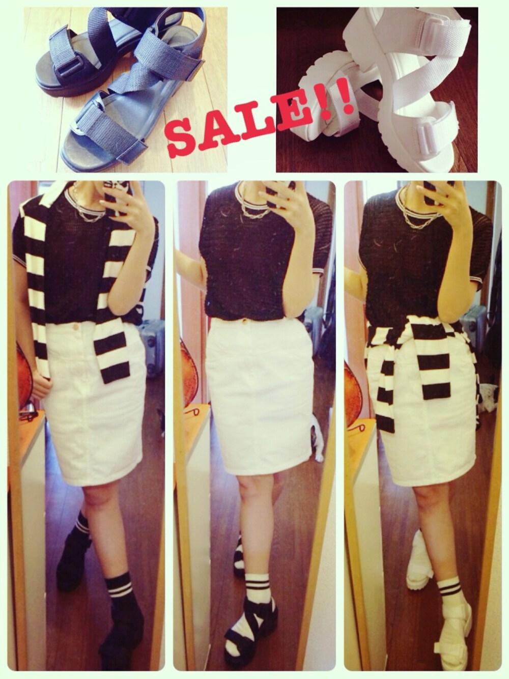 いつだっけか?のCoordinates。 あみあみのライントップスに ラインソックスに ボーダーラインな ラインコーデ☆ 気になってたサンダル。 履いてみたらはき心地に軽さに感動‼︎ 即2色買い☆w トップスともにSALEでゲット。 最近、色に迷ったら どっちかじゃなくどっちも。 ってゆー頭になる… ほら、靴下までw