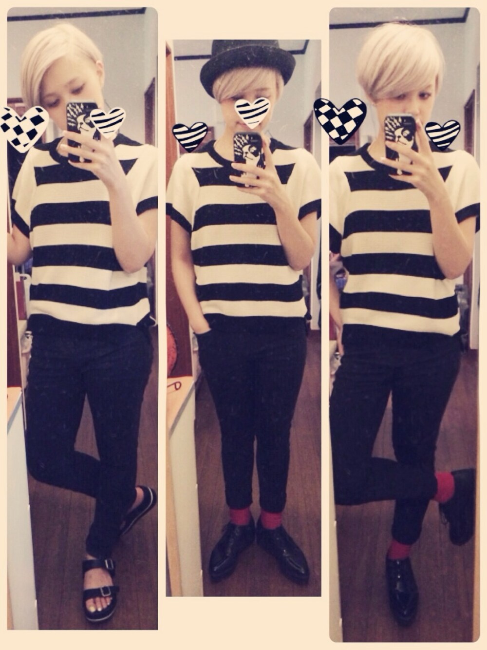 ボーラーハット、パントマイム的な… 大道芸人な装いw