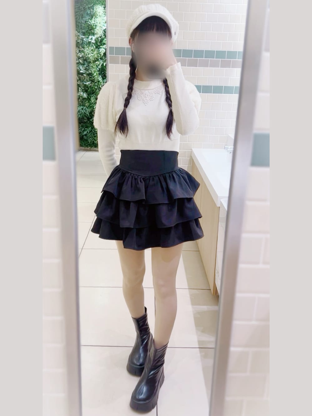 スタイル良く見えるスカートがお気に入り♡ キャスケットもふわふわで春先まで被れそう