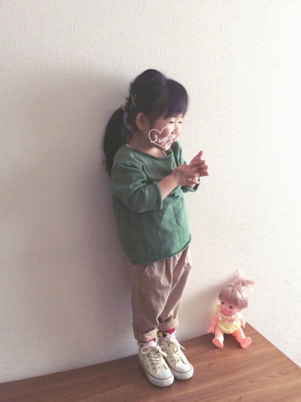 おててに落書きしまくり〜( •́ ⍨ •̀) 久々に地味色から脱出🙈 最近お絵描きが上達して♡ 小窓のはパパでも無くママでも無く 土井先生 忍たま乱太郎に出てくる 土井先生(ご存知でしょうか??) 忍者に初恋中の娘です( ॢꈍ૩ꈍ) ॢ♡♡♡笑