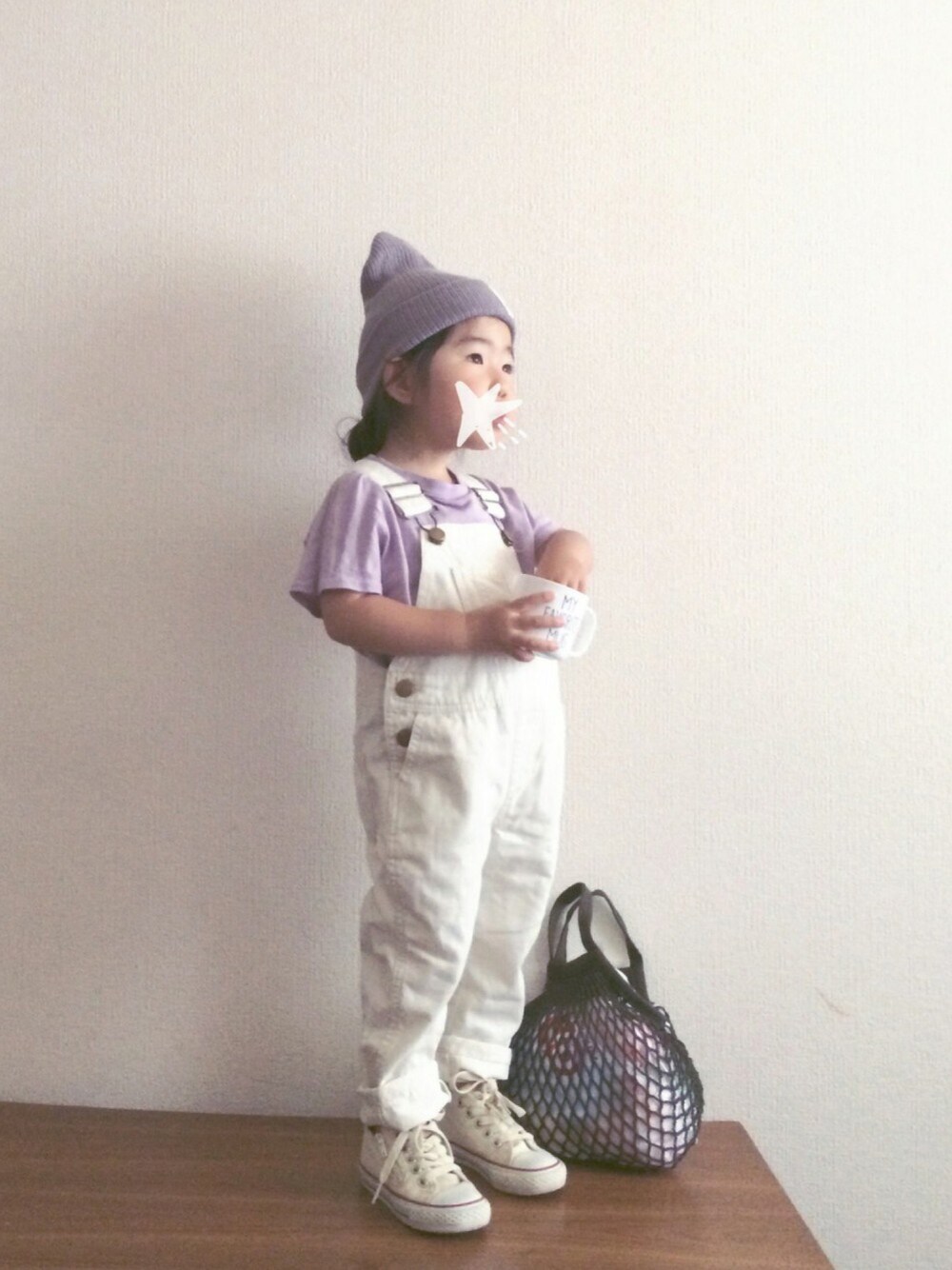 ネットバッグは届いてびっくり… 小さい…(°_°) サイズ間違えて買っちゃってた 笑 うっかり◟(˟ε˟ ◟) バッグの中は娘の作品(丸めた折り紙)たくさん入ってます〜