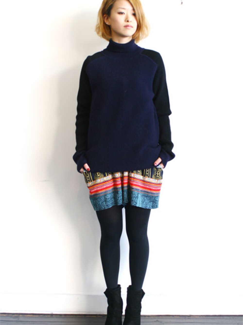 ronestaffのトップス「「bethourire」ベスリール タートルネックカシミアニットトップス<ネイビー>」を使ったコーディネート