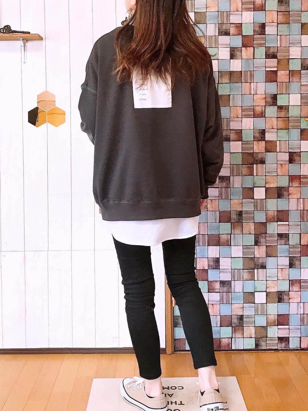 スウェット×スキニーコーデ