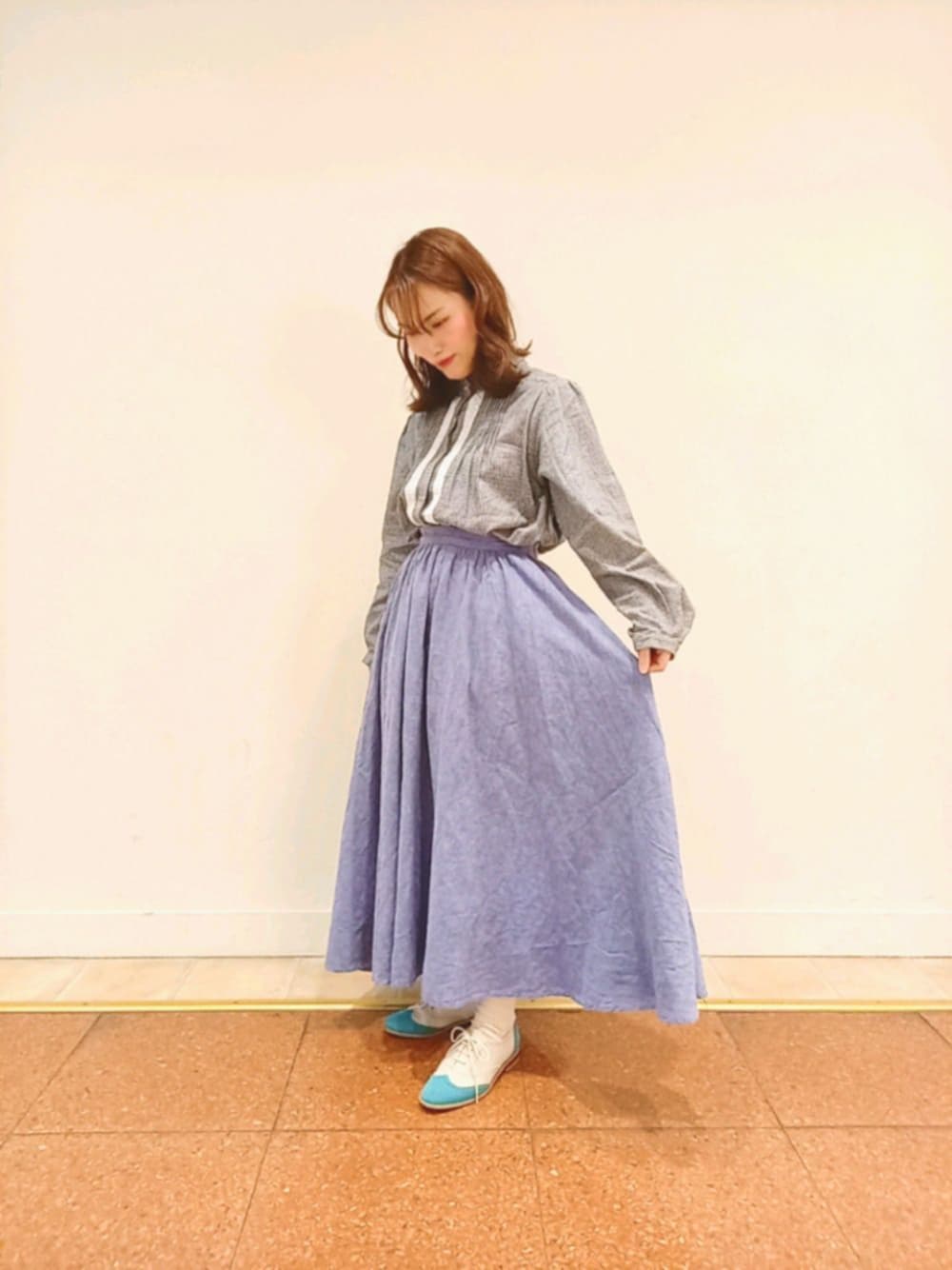 春のトレンドギンガムチェックを取り入れたコーデです♪