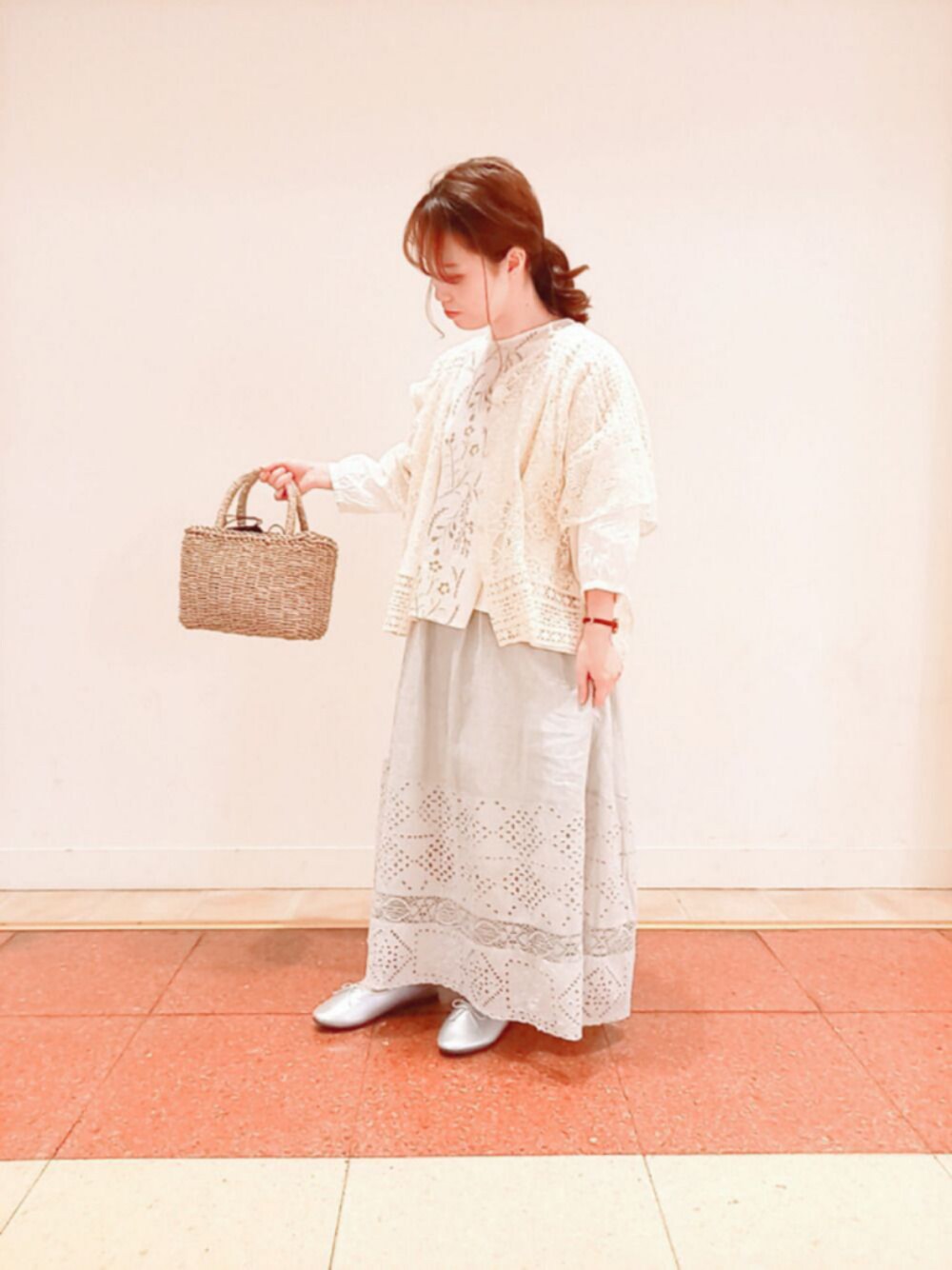 前回のTSUHARUスカラップスカートコーデpart2です♪羽織るものとバッグをその都度変えてみるのが楽しいです☆☆