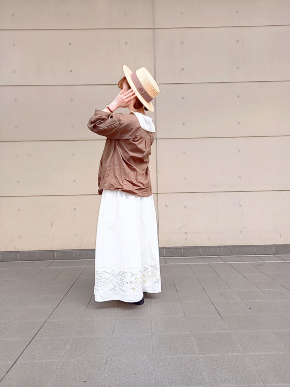 すぅのスカート「夏のお花とスカラップ刺繍スカート」を使ったコーディネート