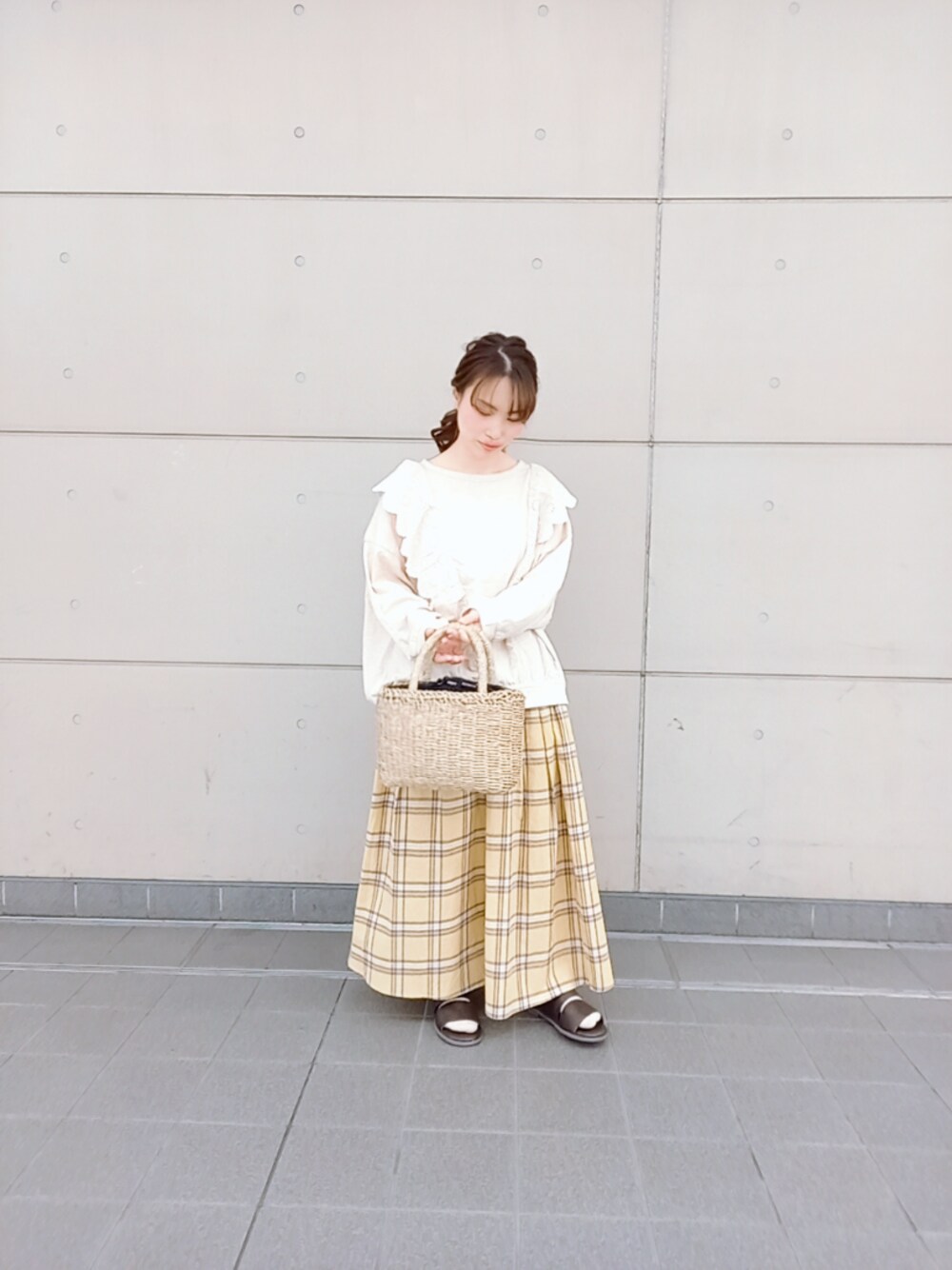 すぅのかごバッグ「水草スクエアカゴバッグ」を使ったコーディネート