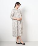 花柄ワンピースを羽織った、Tシャツとパンツのシンプルなコーデです♪ 羽織にできるワンピースは一枚あると大活躍しますよ☆