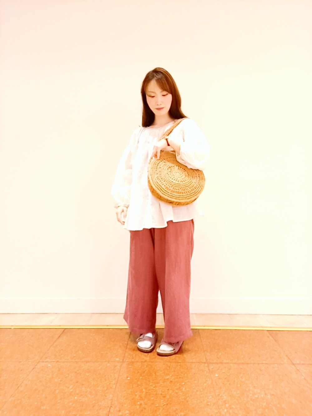 見え辛いですが、ブラウスは首元と手首に刺繍でステッチがあります♪笑 カラーパンツやスカートと相性抜群です☆