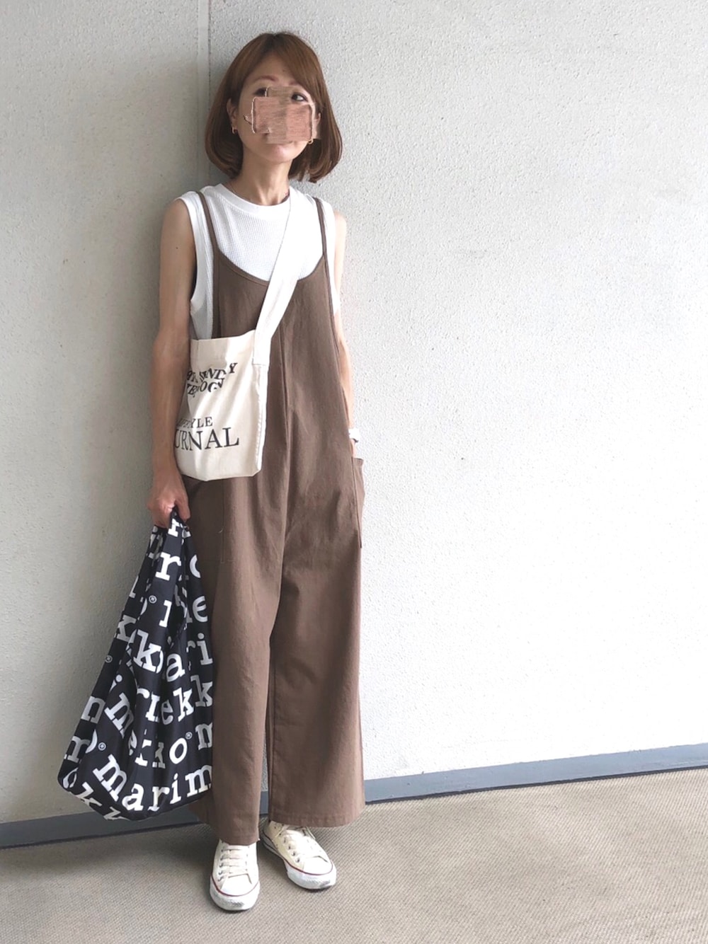 マリメッコのエコバッグ たくさん入ります◎ UNIQLOのワッフルノースリは ゆったり着たくてLサイズです。 今日は短パンじゃないよ(笑) 韓国ブランドNANING9 けっこう好きです◎