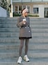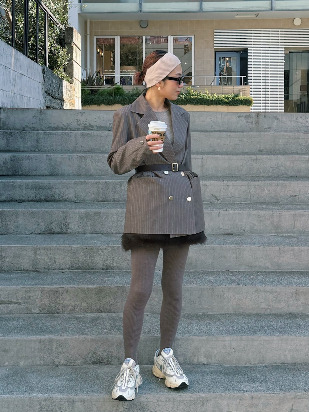 room153 director (room153)のテーラードジャケット「ピンストライプパワーショルダージャケット」を使ったコーディネート