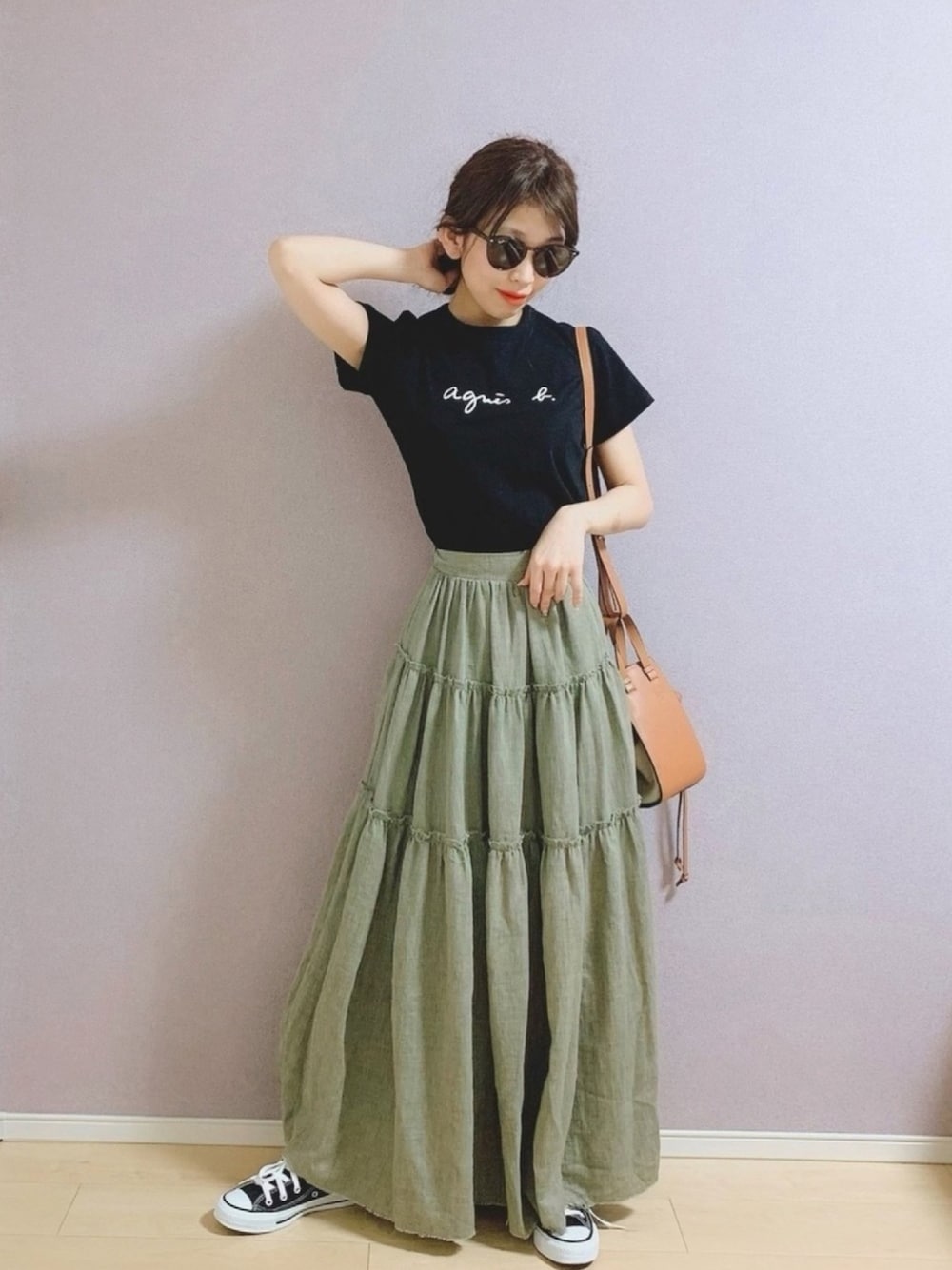 ᵍ ᵒ ᵒ ᵈ ᵐ ᵒ ʳ ᐢ ⁱ ᐢ ᵍ 🔅 ウォッチ👀✨ありがとうございます𓅪 #フレアスカート 今回もカジュアルにっ( ´﹀` )♡ スニーカー合わせにしました🌼 着回せるagnes b.の ロゴTシャツは何にでも合います🐰🍒 コンバース色違いが欲しいなぁ👟✧ ベージュかブラウンがとても悩む……🙊💭