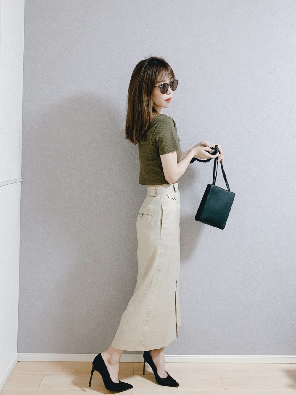 good afternoon☺︎ ウォッチ👀✨ありがとうございます♥ ungridの麻素材のタイトスカート𓇼 トップスにEVRISの WIDE OPEN シンプルリブTEE ✧ お色も沢山あって着回し出来るtops( ˘꒳˘) ぜひチェックしてみてください꙳★*゚ プチプラなのも嬉しい🙈♡ 𝑇ℎ𝑎𝑛𝑘𝑠♡
